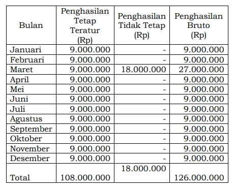 Berikut rekapitulasi penghitungan PPh Pasal 21 bagi Tuan H: